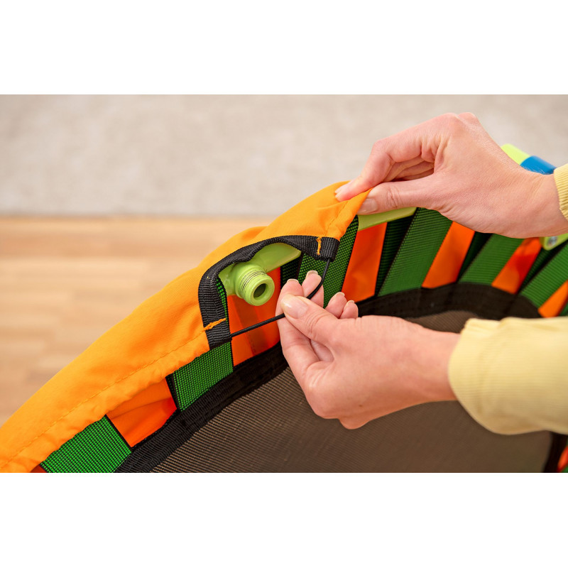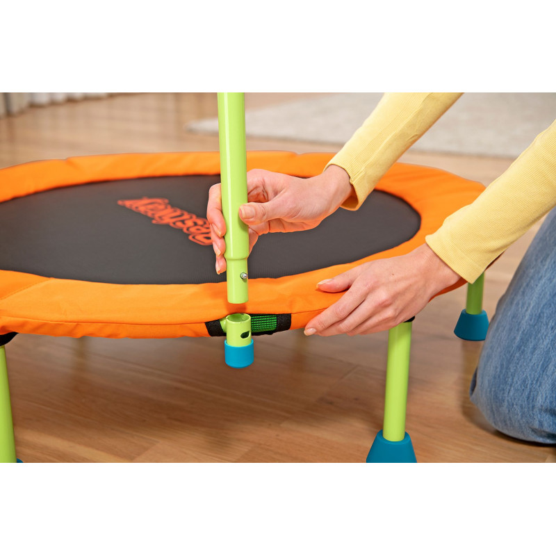 Le trampoline se distingue par une construction stable et durable. Le cadre en acier thermolaqué résistant a la corrosion garantit longévité et sécurité maximale lors des sauts. La capacité maximale de charge de 25 kg permet aux enfants des 3 ans de s’amuser en toute sécurité. La barre stabilisatrice amovible avec poignée en mousse souple offre un soutien sur a chaque saut.