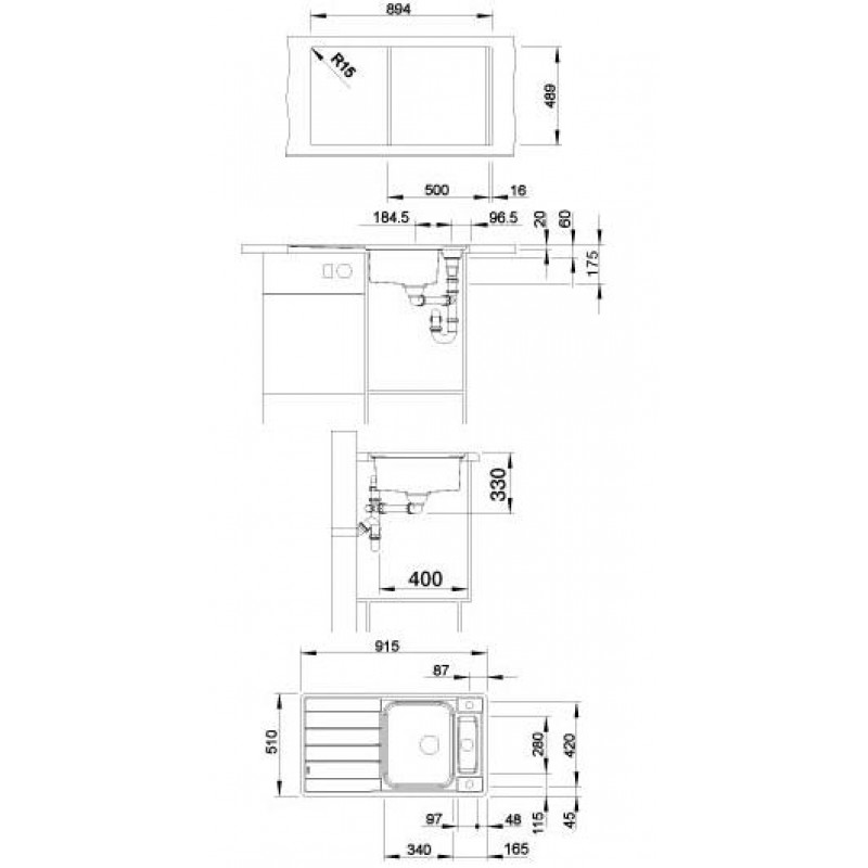 BLANCO Axis II 5S-IF Évier inox, avec siphon et accessoires, finition soie brillante 51652