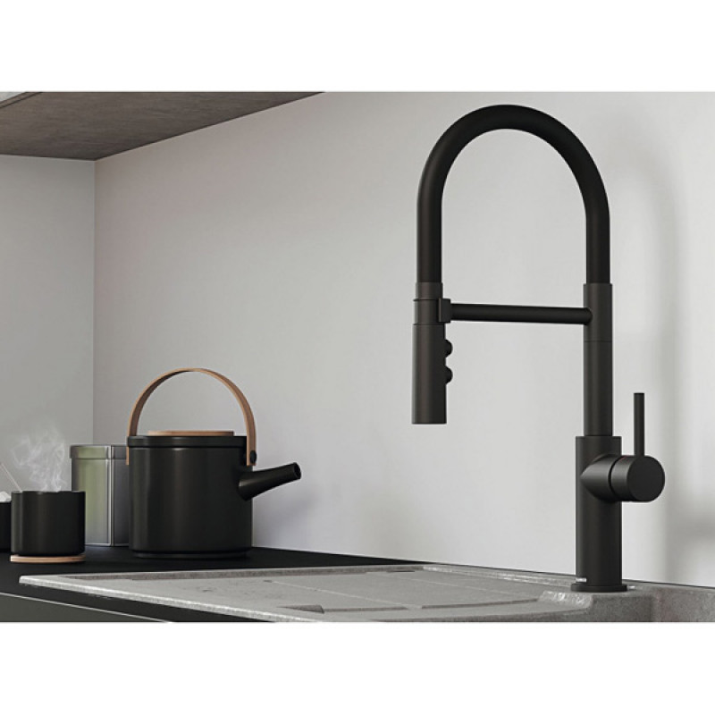 Blanco Catris S - Mitigeur d'évier avec bras flexible et douchette, noir mat