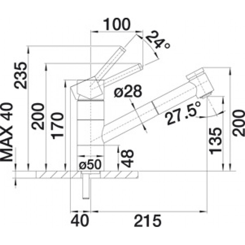 • Bec équipé d’un mousseur avec jet laminaire clair