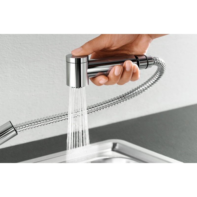 • 2 jets: jet perlant (jet enrichi en air pour une eau plus légere et plus douce), douchette (jet enrichi en air pour le nettoyage des fruits et légumes)