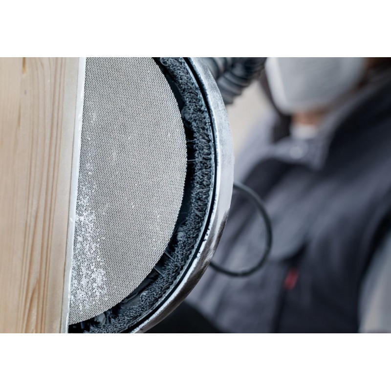 • A utiliser avec des patins de plateau pour le ponçage efficace du bois, de la peinture et des cloisons seches avec moins de poussiere