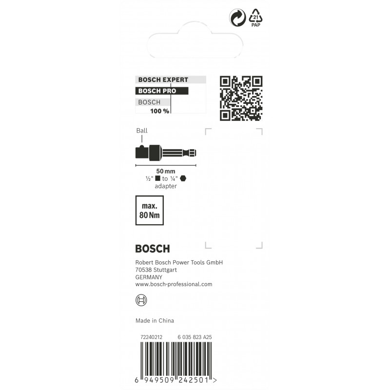- Pro odeslání do Česka navštivte BOSCH PRO Socket Adapter s kuličkou, 1/2", 50 mm 2608522564