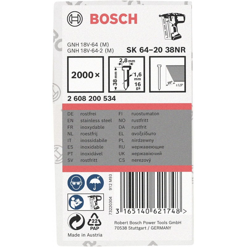 - Um nach Österreich zu versenden, besuchen Sie BOSCH Stauchkopfnagel, SK64-20 38NR 260820054