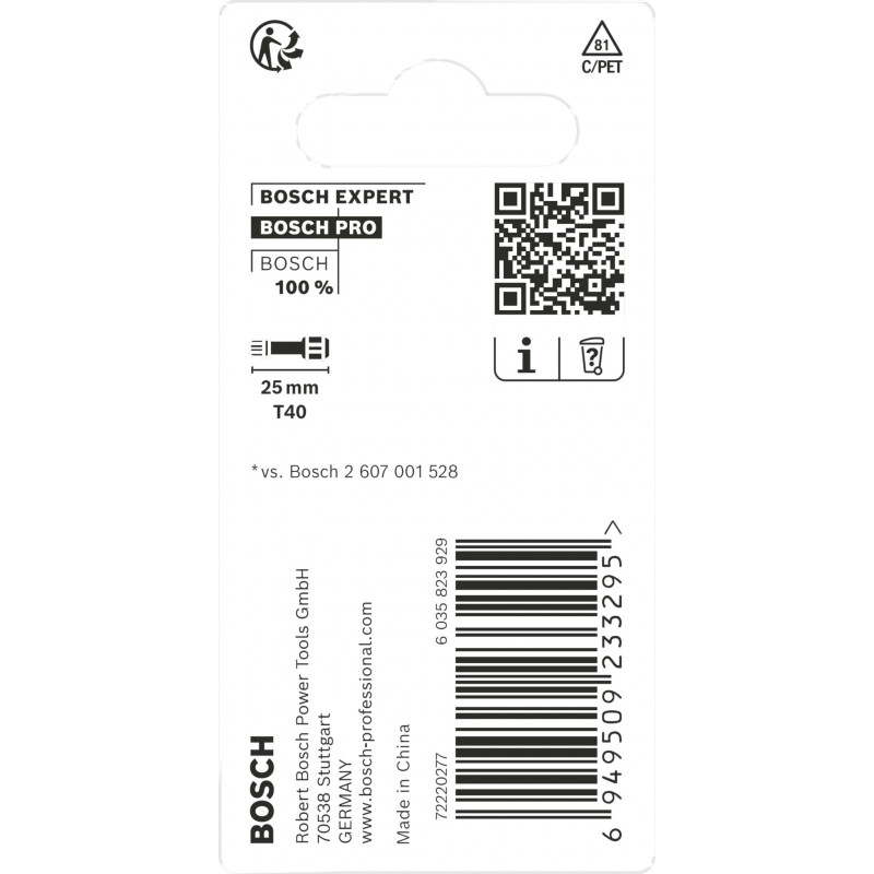 - Um nach Deutschland zu versenden, besuchen Sie BOSCH PRO Torx Impact Bit, T40, 25 mm, 2-tlg. 2608522478