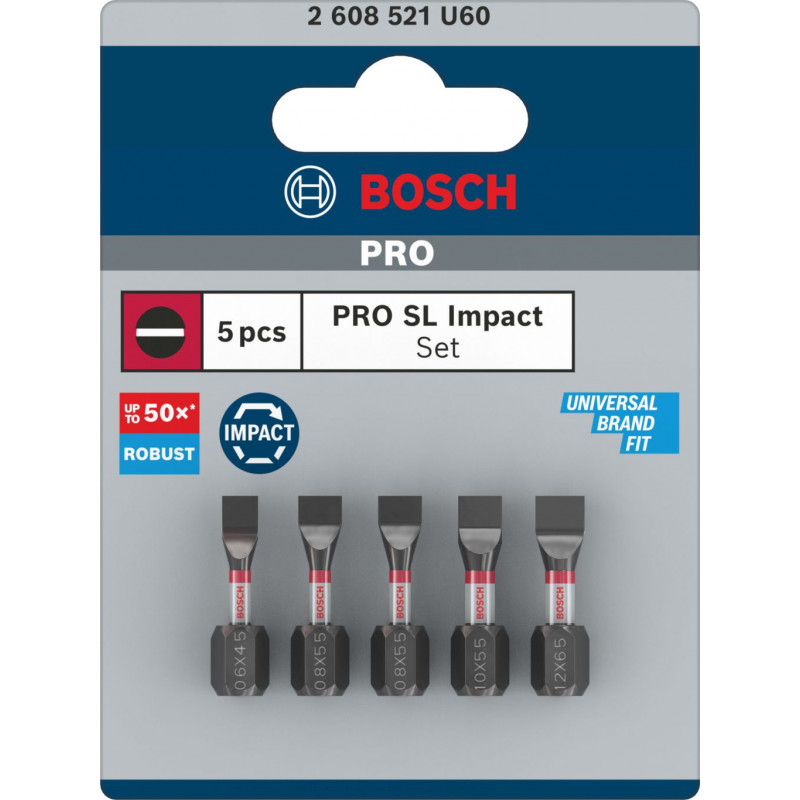 BOSCH Embouts PRO SL Impact, SL4.5, SL5.5 (x2), SL5.5, SL6.5, 25 mm, 5 pieces 2608521U60