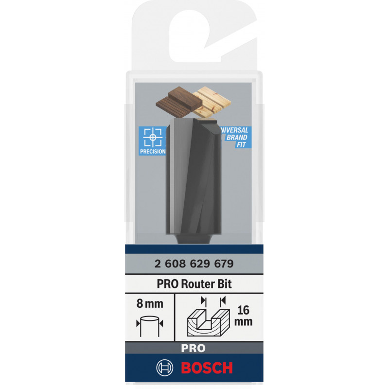 BOSCH Fraise droite PRO, 2 cannelures, ø 16 × L 30, queue 8 mm 2608629679