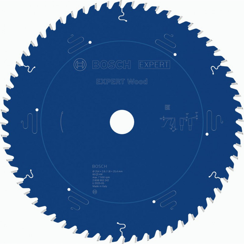 BOSCH Lame de scie circulaire EXPERT Wood, 254 x 2,6/1,8 x 25,4 mm, T60 2608902242