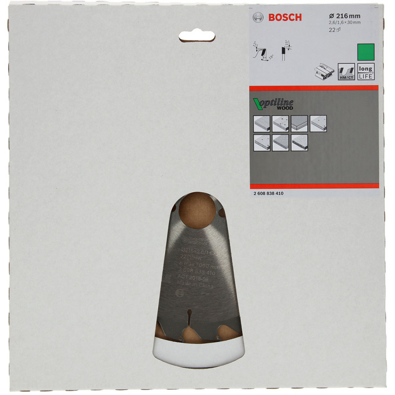 BOSCH Lame de scie circulaire Optiline Wood 216 x 2,6/1,6 x 30 T22 2608838410