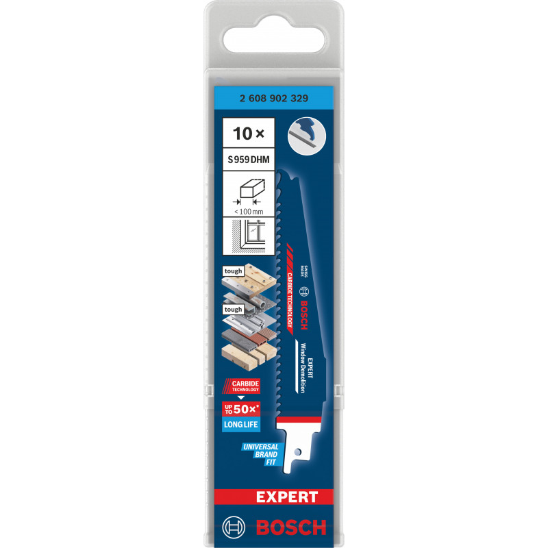 En associant longévité, efficacité et capacité a effectuer n'importe quel travail de démolition sur des portes ou fenetres, la lame de scie sabre Bosch EXPERT Window Demolition est nettement l'un des outils préférés des spécialistes de la pose de fenetres. Elle résiste meme au contact avec la maçonnerie, le mortier et le plâtre.