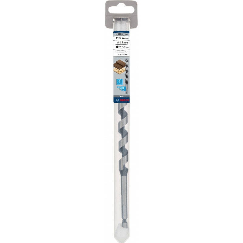 BOSCH Meche a bois hélicoidale, six pans 12 x 170 x 235 mm, d 6,35 mm 2608597626