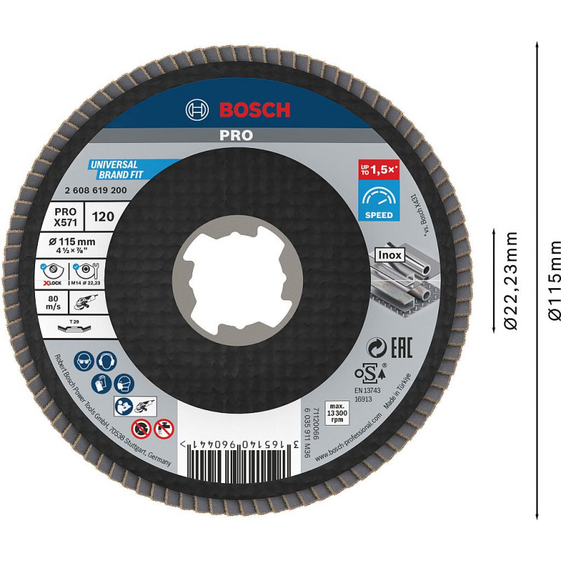 - Pro odeslání do Česka navštivte BOSCH X-LOCK Best for Metal Lamelový brusný kotouč X571, 115x22,23mm, G120 2608619200