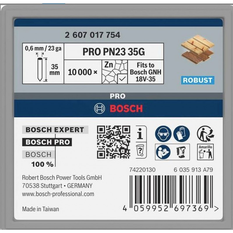 BOSCH PRO PN23 G Pin, 0,65/23 g, galvanisé, 35 mm, 10 000 pieces 2607017754