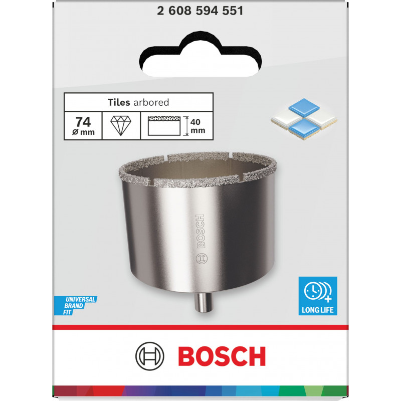 BOSCH Scie trépan avec adaptateur Tiles, 74 x 40 mm 2608594551