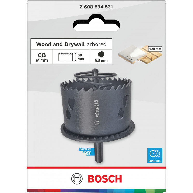 BOSCH Scie trépan avec fraise conique et adaptateur Wood and Drywall, 68 x 30 m 2608594531