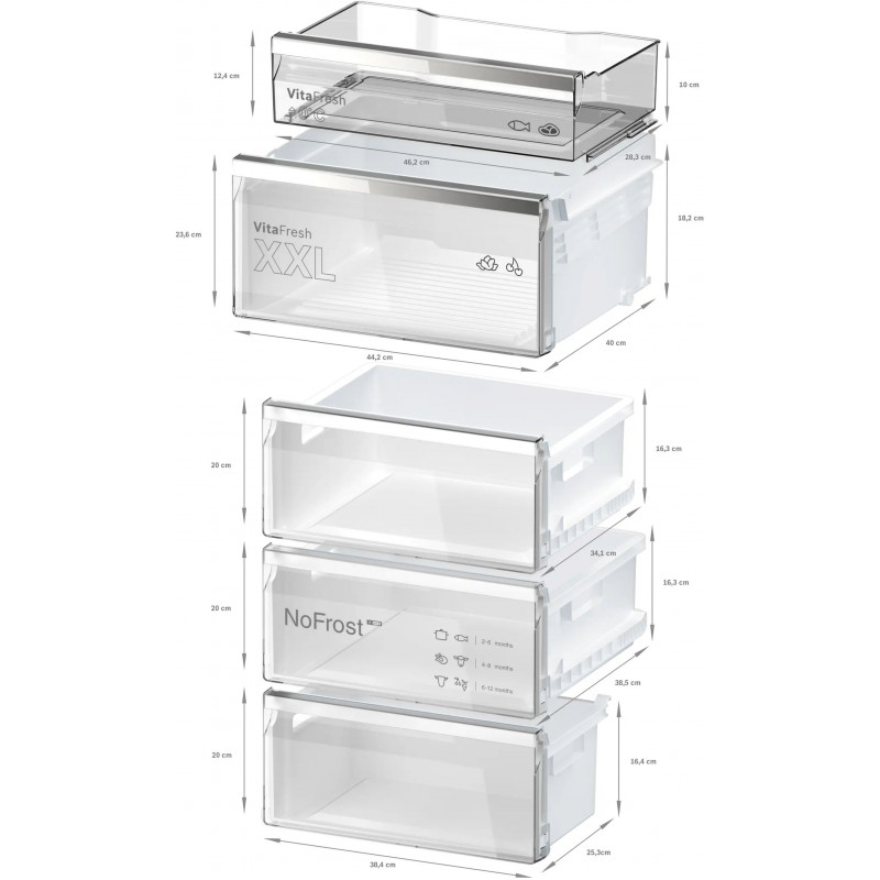 - Tiroirs VitaFresh XXL <0°C> – préservent la fraîcheur des aliments plus longtemps grâce a de grands tiroirs a température contrôlée.