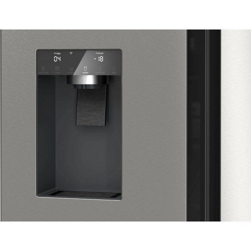 Le distributeur intégré, raccordé au réseau d’eau, permet de servir des glaçons, de la glace pilée ou de l’eau fraîche filtrée sans remplissage manuel de réservoir. Il offre un confort d’utilisation quotidien et un accès rapide à l’eau et à la glace à tout moment.