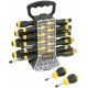 Le set se compose d’une pince universelle, d’un tournevis universel, d’un marteau de mécanicien de 300 g en fibres de verre, d’un cutter a lame sectionnable, d’un metre ruban de 3 m, d’un niveau a bulle de poche de 25 cm, d’un crayon marqueur pour trous profonds et 18 embouts de différents types et tailles.