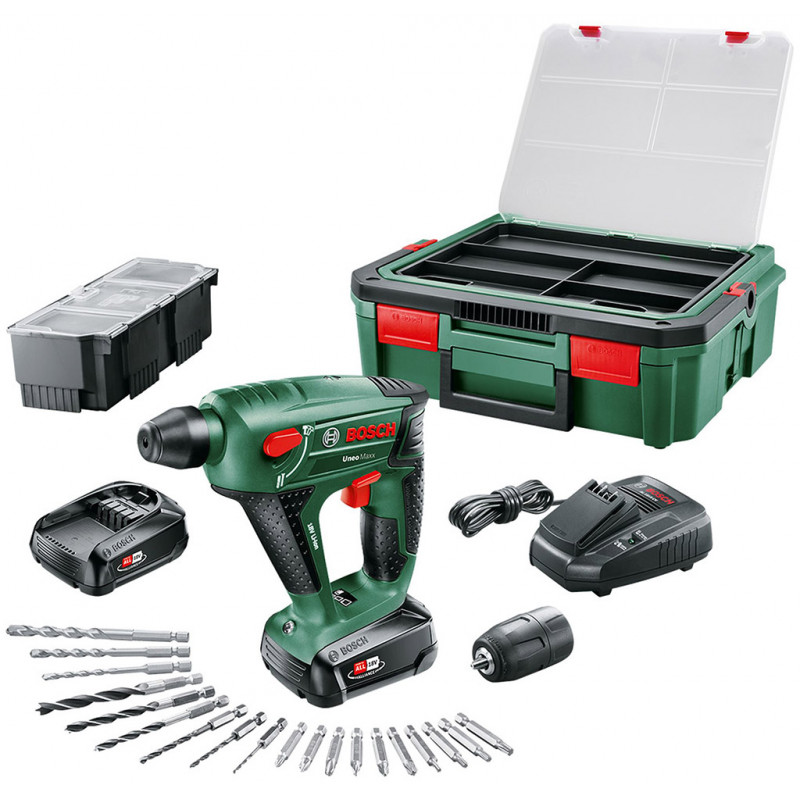 - Pro odeslání do Česka navštivte BOSCH Uneo Maxx 18 Li Aku kombinované kladivo (2x1,5 Ah) + Systembox 060395230K