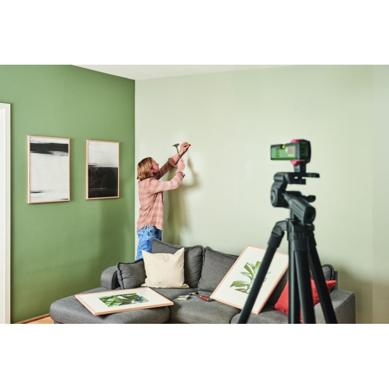 Facile a utiliser, le niveau électronique UniversalWallLevel au format de poche combine les fonctionnalités d’un niveau, d’un laser points et d’un laser lignes. Parfait pour une grande variété de travaux, il projette des lignes horizontales, verticales ou obliques ou des points avec une précision de ± 0,5 mm/m. Cet appareil pratique est idéal pour poser des rampes d’escalier, aligner des éléments hauts, installer des étageres ou suspendre des cadres photo et – quand il est utilisé en tant que pointeur laser – pour transmettre des hauteurs exactes tout autour d’une piece pour la pose d’interrupteurs et de prises électriques. Grâce au support mural aux aimants logés dans le boîtier, l’UniversalWallLevel peut etre solidement fixé sur une multitude de surfaces.