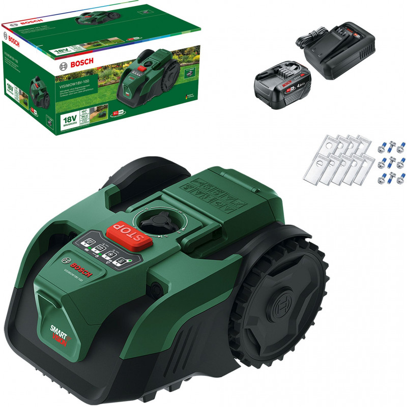 BOSCH VISIMOW18V-100 Tondeuse robot sans fil, 1x 4,0Ah, lames de rechange 06008E1002