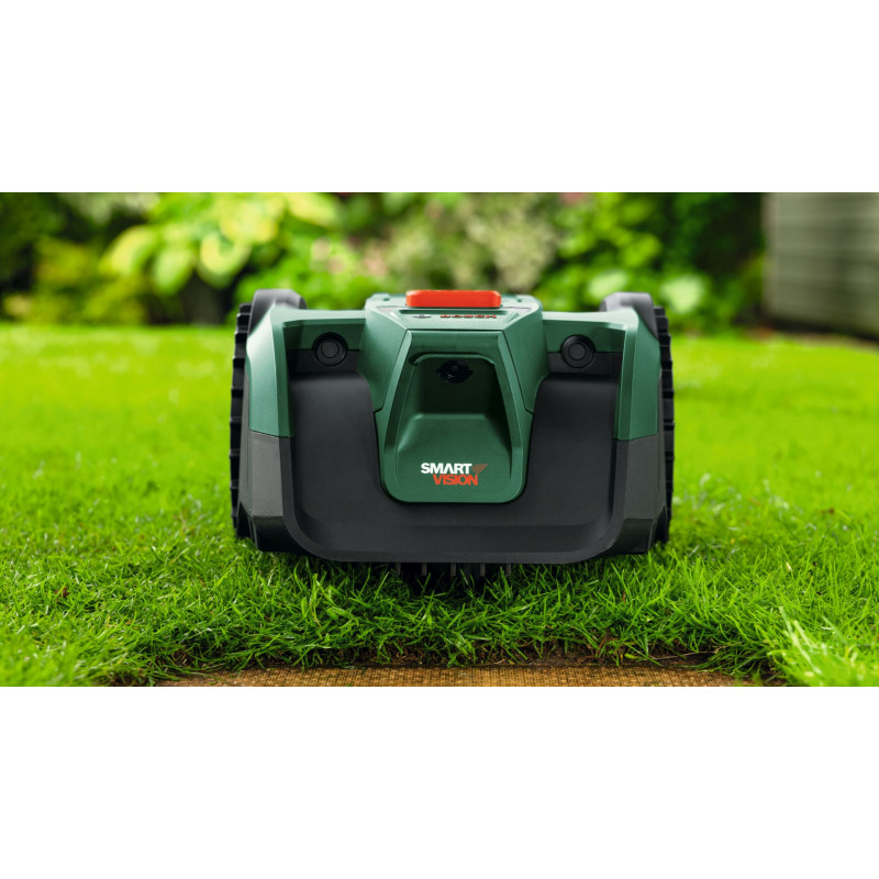 BOSCH VISIMOW 18V-100 est une tondeuse robotisée moderne conçue pour l’entretien automatique des pelouses jusqu’a 100 m2. Grâce au systeme intelligent SmartVision, aucune installation de câble périphérique ni infrastructure complexe n’est nécessaire. Trois boutons suffisent pour la mettre en marche en quelques secondes.