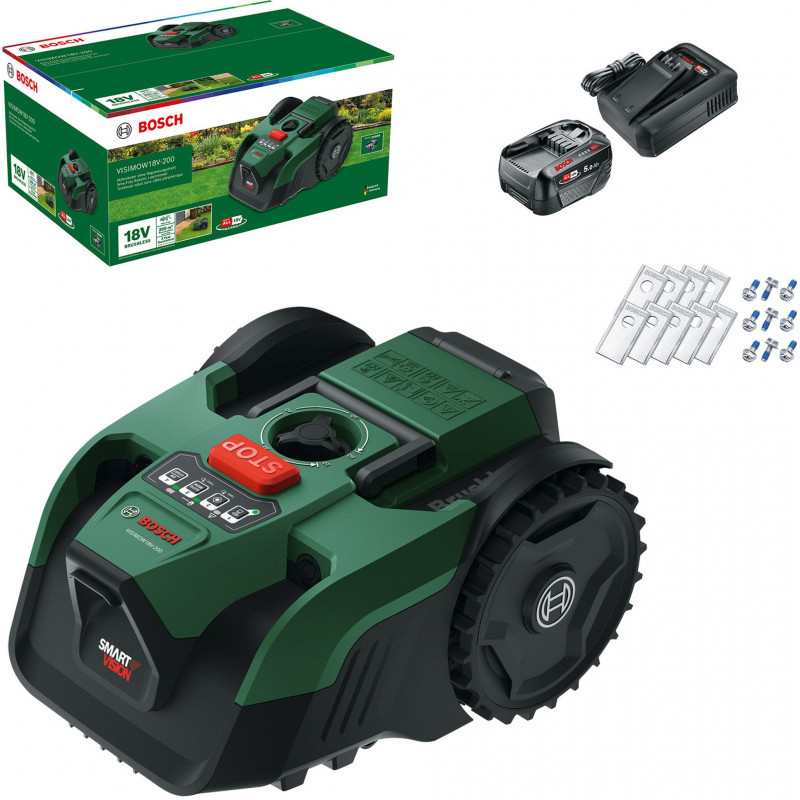 BOSCH VISIMOW18V-200 Tondeuse robot sans fil, 1x 5,0Ah, lames de rechange 06008E1102