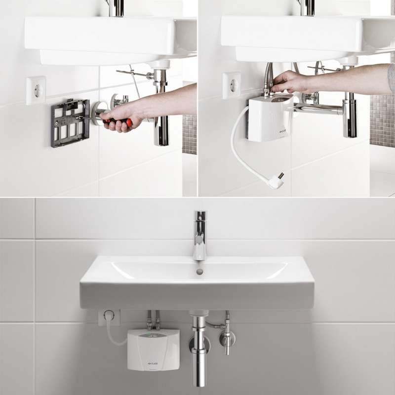 CLAGE MBH 4 est un petit chauffe-eau instantané a commande hydraulique conçu pour la production d’eau chaude de maniere économe en énergie directement au point d’utilisation, par exemple sous un lavabo ou un évier. Le chauffe-eau fonctionne avec une installation sous pression et des robinetteries standard.