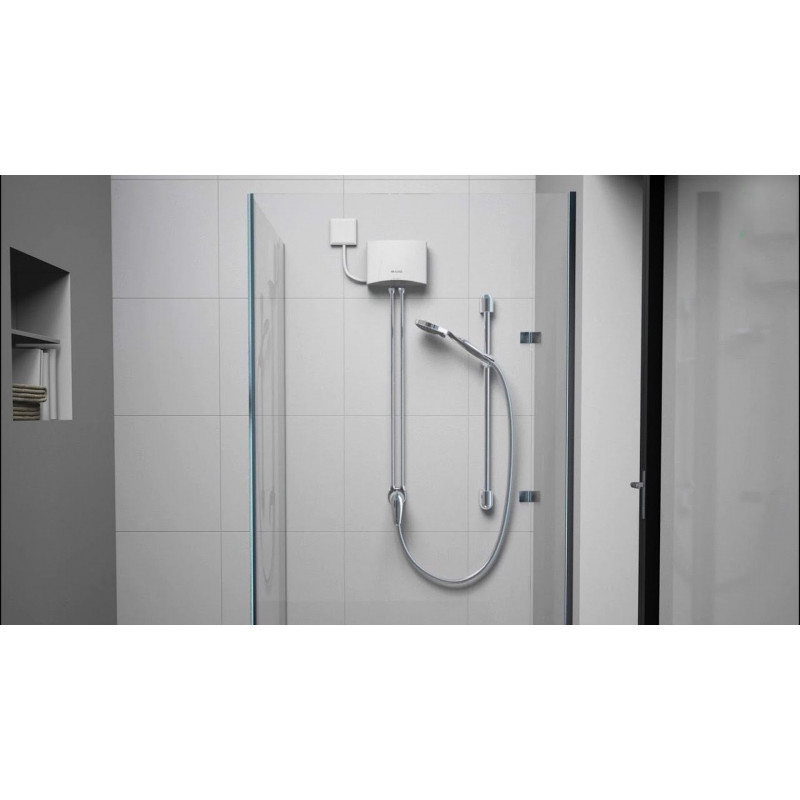 CLAGE MBX 7 Shower est un chauffe-eau instantané électronique compact d’une puissance de 6,5 kW, conçu pour alimenter un point de douche unique. Ce systeme complet comprend un mitigeur de douche, une barre murale et une douchette, permettant d’obtenir de l’eau chaude immédiatement sans réservoir et sans pertes thermiques inutiles.