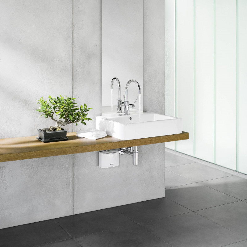 L’eau est chauffée instantanément pendant l’écoulement, sans réservoir et sans pertes en veille. La régulation électronique adapte automatiquement la puissance de chauffe au débit et a la température d’entrée afin de garantir une température de sortie stable, dans les limites de performance de l’appareil. L’installation sous le lavabo réduit les pertes thermiques dans la tuyauterie et améliore l’efficacité énergétique.