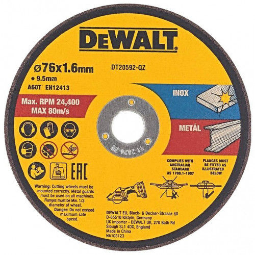 DeWALT DT20592 Disque a tronçonner haute performance 76x1,6x9,5mm inox et métal typ
