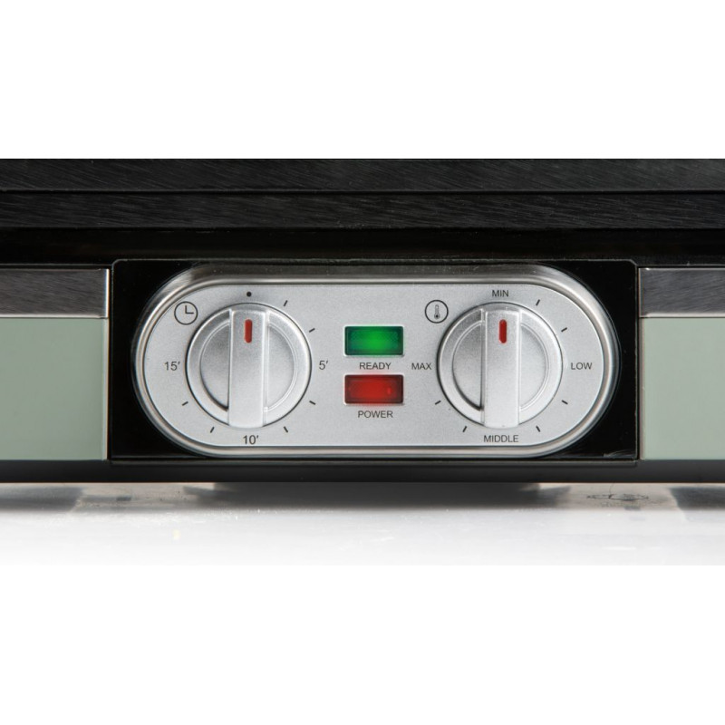 Surveillez la cuisson avec le minuteur intégré et les témoins lumineux. Avec une puissance élevée d’environ 1400–1520 W, vos gaufres sont pretes rapidement.