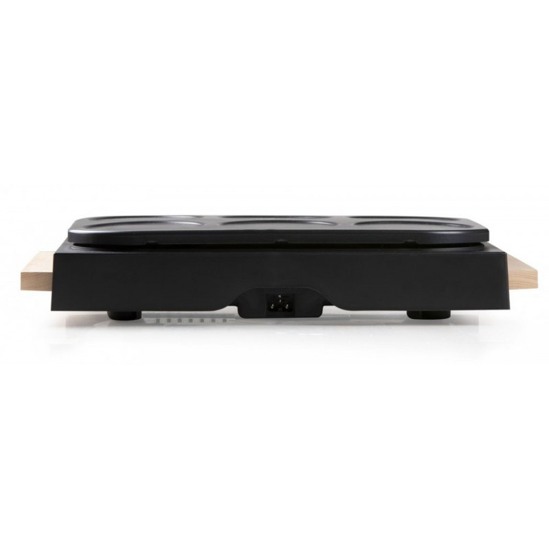 La crepiere DO8717P de DOMO est équipée d’une plaque au revetement anti-adhésif permettant de préparer 6 petites crepes de 11.5 cm de diametre.L'utilisation est simple avec ses lampes témoins et un thermostat réglable d'une puissance de 1000 Watts.La surface de cuisson avec revetement antiadhésif de haute qualité est tres facile a nettoyer.Salée et sucrée, elle vous permet de partager un bon repas ou gouter en famille ou entres amis.