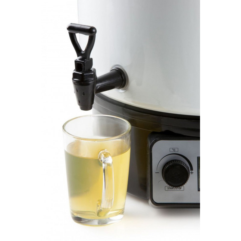 Stérilisateur automatique avec revetement émaillé et commande numérique précise – un allié indispensable pour la stérilisation, la mise en bocaux de fruits et légumes, mais aussi pour la préparation et le service de boissons chaudes grâce au maintien au chaud. Une fois les réglages effectués, l'appareil s'occupe de tout et s’éteint automatiquement avec un signal sonore a la fin du programme.