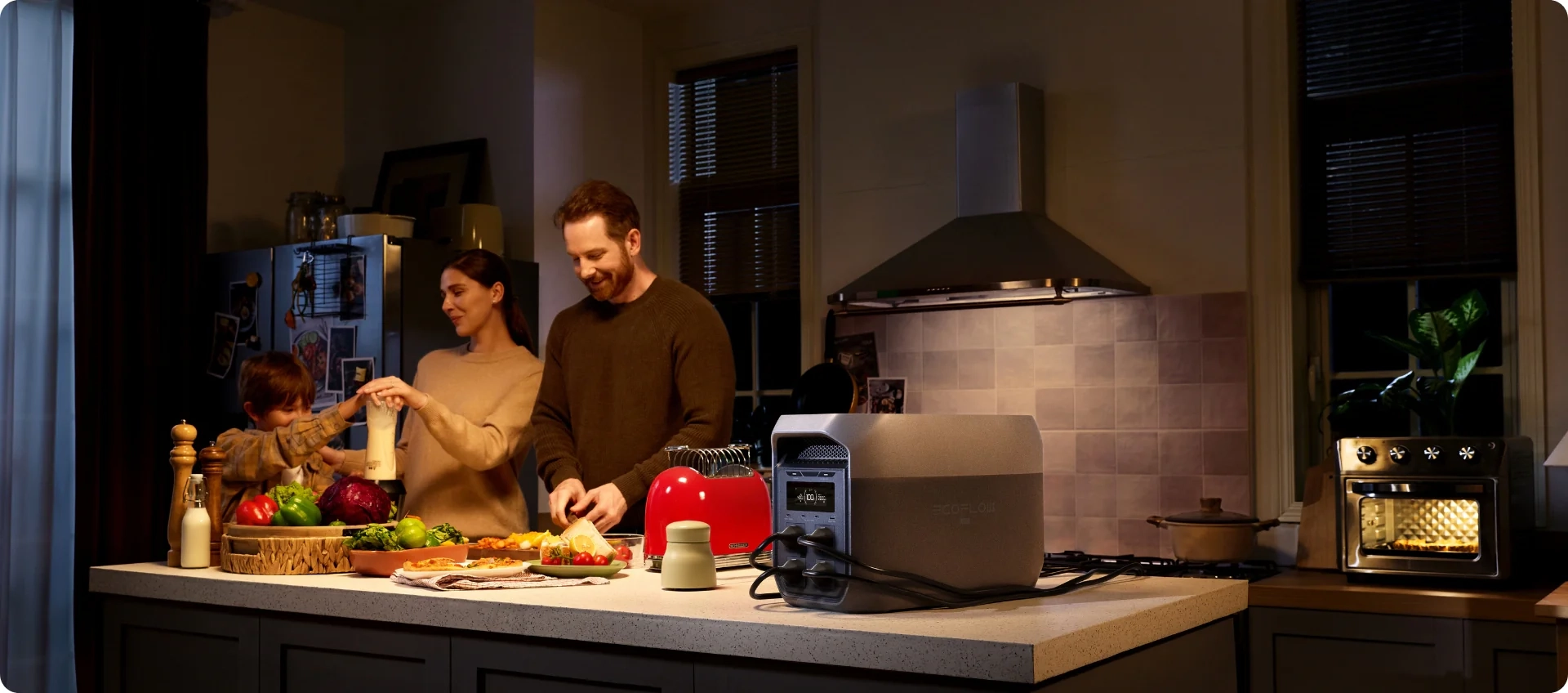 L’EcoFlow DELTA 3 Max est une station d’alimentation portable hautes performances offrant 2 048 Wh de capacité et 2 400 W de puissance nominale, capable d’alimenter sans difficulté la plupart des appareils domestiques ainsi que des outils électriques exigeants. Grâce a la technologie X-Boost, elle peut gérer des appareils consommant jusqu’a 3 200 W, ce qui en fait une solution idéale pour la maison, l’atelier, le camping-car ou les activités extérieures.