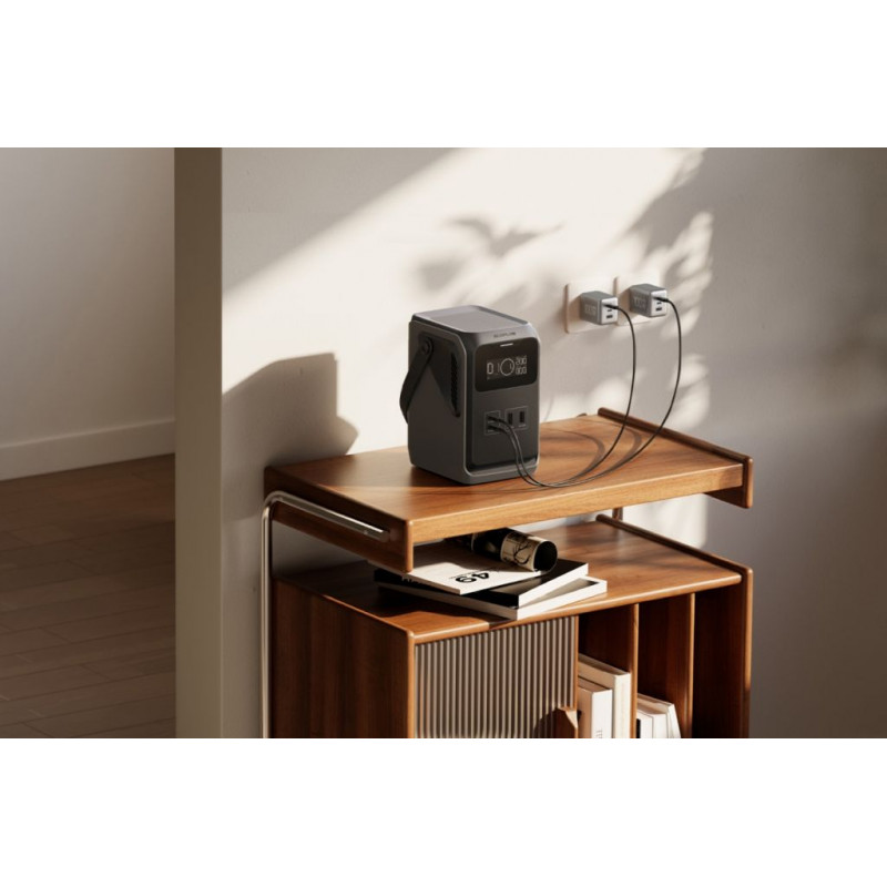 La station peut etre prete a l’emploi en seulement une heure. Grâce a une recharge rapide de 200 W, elle atteint 80 % de sa capacité en seulement 57 minutes. En cas de recharge a 100 W, cela prend environ 102 minutes.