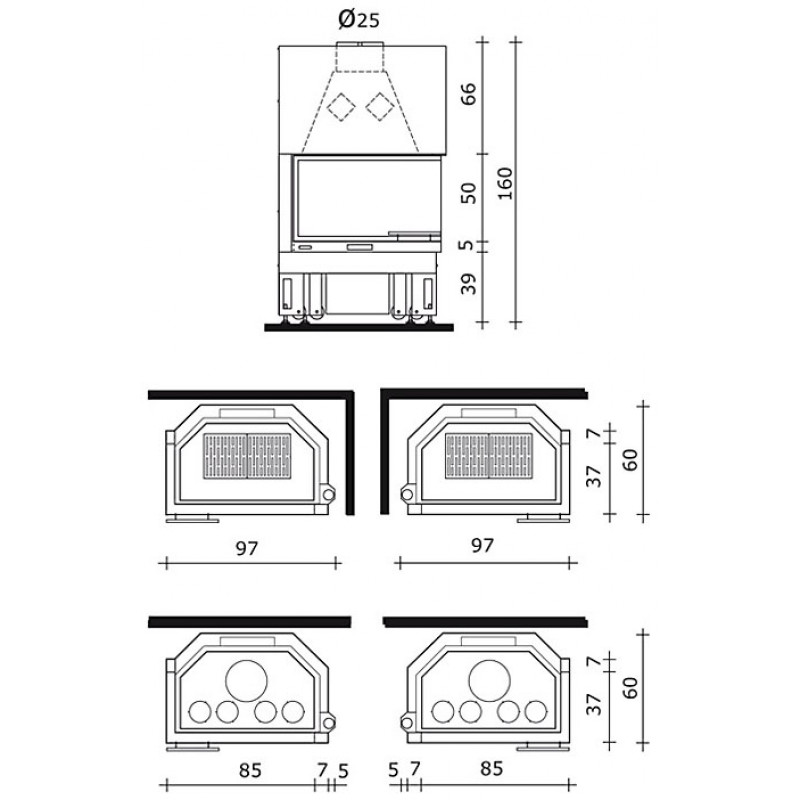 - Um nach Österreich zu versenden, besuchen Sie Edilkamin TITANO N Holz-Kamineinsatz, linke Verglasung, einteiliges Glas 220640
