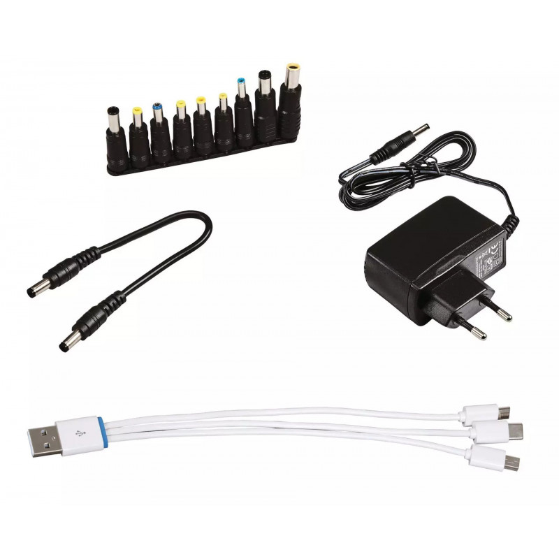 La station d’énergie ou booster de démarrage, L'Einhell CE-JS 12 est une station d’énergie compacte et pratique pour le démarrage rapide et est idéale lors de vos déplacements en voiture. Avec une seule charge, vous pouvez démarrer la voiture lorsque la batterie est déchargée, mais vous pouvez aussi rapidement charger des téléphones portables, des tablettes, des appareils photo, etc. La batterie au lithium polymere de 3 x 2700 mAh offre toute la puissance donc vous avez besoin. L'état de charge est indiqué sur l'écran a LED. Une lampe a LED vous procure un allumage continu, ou bien stroboscopique et peut aussi servir dans des situations d’urgence avec un signal SOS. La station d’énergie portable possede une sortie USB 5V / 2A et une sortie de chargement rapide de 12 V/ 10A (Pour les compresseurs / gonfleurs dans la voiture), et d’une sortie de 19v /3.5A (pour les ordinateurs portables et les téléphones) ce qui facilite le chargement de nombreux appareils. Vous trouverez également de nombreux accessoires tels que Des câbles de liaison avec des pinces entierement isolées et une protection contre les surcharges pour la connexion a la station d’énergie, un câble adaptateur USB pour 9 sortes de d’ordinateurs portables, (convient par exemple pour Dell, HP, IBM, Lenovo, Toshiba, Sony, Samsung, Acer, etc.) Asus, Fujitsu, NEC, etc.), un adaptateur de charge 230 V un câble de charge USB et un étui de protection pour le stockage de la batterie.