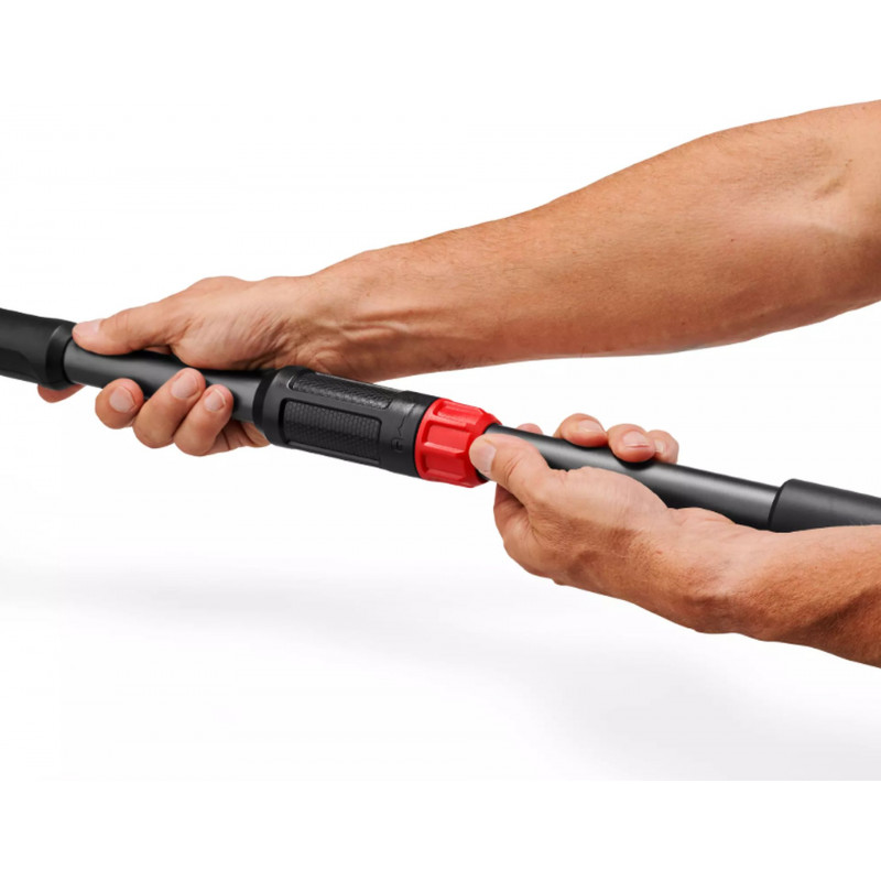 Le manche télescopique en aluminium peut etre réglé en continu entre 1 et 1,6 m pour tailler a une hauteur maximale de 3,8 m.