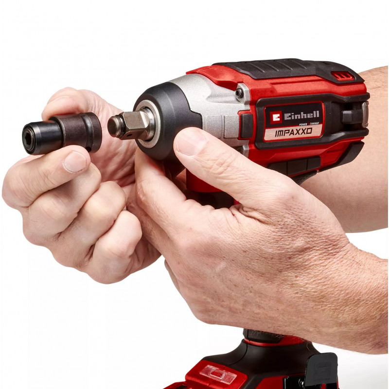 La clé a chocs sans fil IMPAXXO 18/230 Einhell est un outil idéal pour l’entretien et la réparation de vos véhicules personnels. Cet outil pratique permet de dévisser en un tour de main les écrous des roues de votre véhicule, et vous évite de perdre du temps et des forces lors du changement des pneumatiques au printemps et a l’automne. Cette puissante clé a chocs offre une alternative confortable au dévissage manuel pénible. Le moteur sans charbon assure davantage de puissance et une durée de fonctionnement plus longue que les moteurs a charbon classiques. De plus, la clé a chocs fait partie de la gamme Power X-Change, au sein de laquelle les batteries lithium-ion tres performantes et les chargeurs sont compatibles avec l’ensemble des appareils. Les bénéfices sont évidents : avec la nouvelle génération d’appareils sans fil puissants et résistants Einhell, plus de risques de trébucher sur des câbles genants ou d’etre entravé dans votre liberté de mouvement. Vous pouvez ainsi changer toutes les roues de votre véhicule rapidement et en toute sécurité. Grâce a son couple élevé, la clé a chocs sans fil fournit une puissance suffisante pour desserrer aussi en un tour de main les écrous grippés, bloqués ou rouillés. Le couple maximal est de 230 Nm, tandis que le couple de desserrage est de 450 Nm. Malgré sa puissance, l’IMPAXXO 18/230 a un gabarit poids plume et se manipule tres facilement. La clé a chocs est vendue avec un porte-embout 4 pans mâle 1/2" robuste et un adaptateur pour embouts de vissage. La lampe LED intégrée éclaire la zone de travail et permet de changer rapidement les pneus, meme a la tombée de la nuit, dans l’obscurité ou dans les garages mal éclairés. L’outil est vendu sans batterie ni chargeur (disponibles séparément).