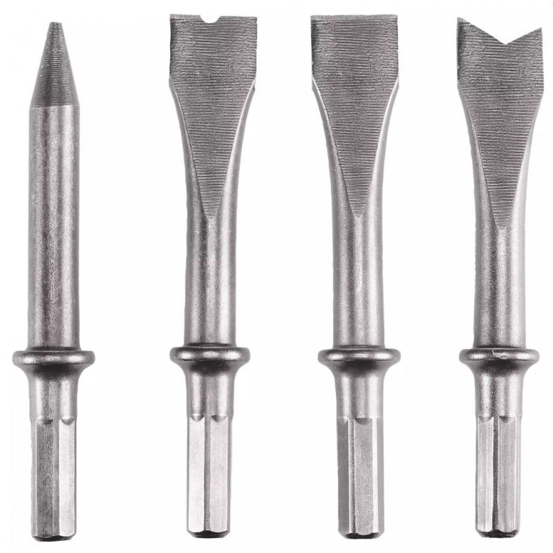Le kit se compose de 4 burins robustes en acier résistant d’une longueur de 120 mm. Il comprend 3 burins plats pour les travaux de burinage et de démolition plus importants ainsi qu’1 burin pointu pour des travaux de démolition plus précis a la maison ou dans le garage.