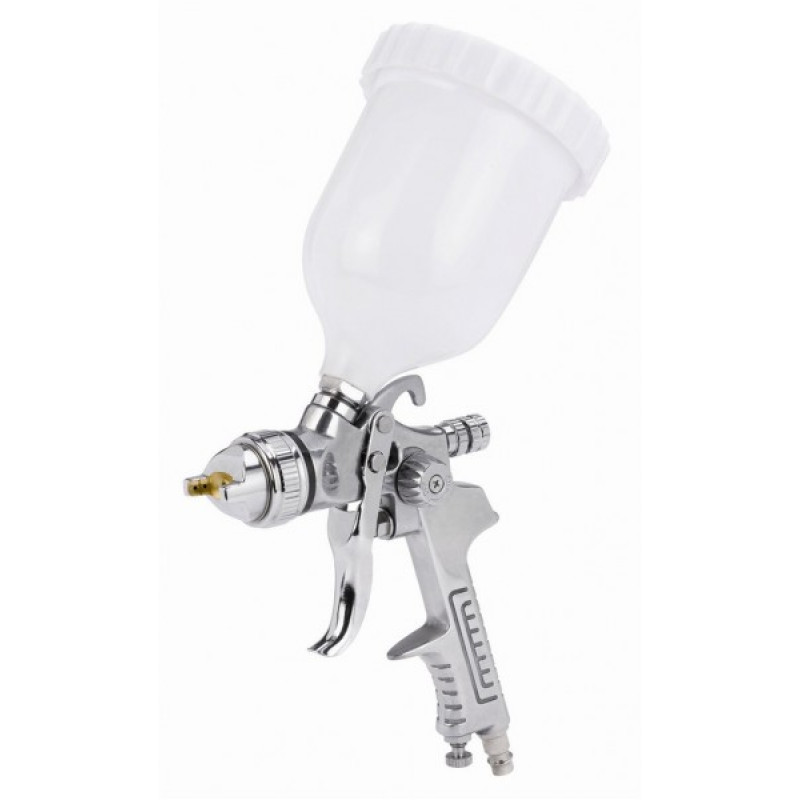 Le pistolet de pulvérisation professionnel avec réservoir gravitationnel est un appareil robuste et précis destiné aux travaux de peinture exigeants, avec une pression de service de 3 a 3,5 bar. Une tres bonne qualité de finition est obtenue grâce a une fabrication solide et a une exécution précise et propre. Ce pistolet de pulvérisation professionnel dispose d’un régulateur de jet ponctuel/large permettant un réglage précis du motif de pulvérisation pour chaque tâche. Grâce a la buse rotative, le jet peut etre réglé en continu de l’horizontal au vertical, assurant ainsi une adaptation optimale au travail en cours. L’application de la peinture peut etre finement dosée a l’aide du régulateur de volume de peinture, et le régulateur de volume d’air vous évite d’aller au compresseur en permettant un réglage précis de l’arrivée d’air comprimé directement sur le pistolet. Avec un volume de 0,6 litre, le réservoir gravitationnel offre une réserve suffisante meme en cas d’utilisation prolongée. La livraison comprend un raccord pour la connexion a un coupleur rapide d’air comprimé.