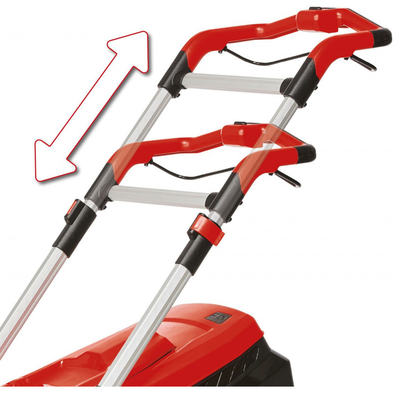 La zone de préhension ergonomique garantit une utilisation confortable. Le guidon réglable en hauteur s’adapte a la taille de l’utilisateur.