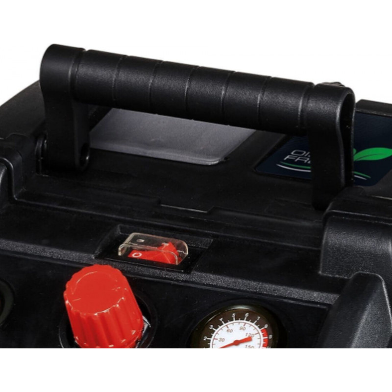Grâce a sa grande poignée située sur le dessus, le compresseur compact de 9 kg se transporte facilement.