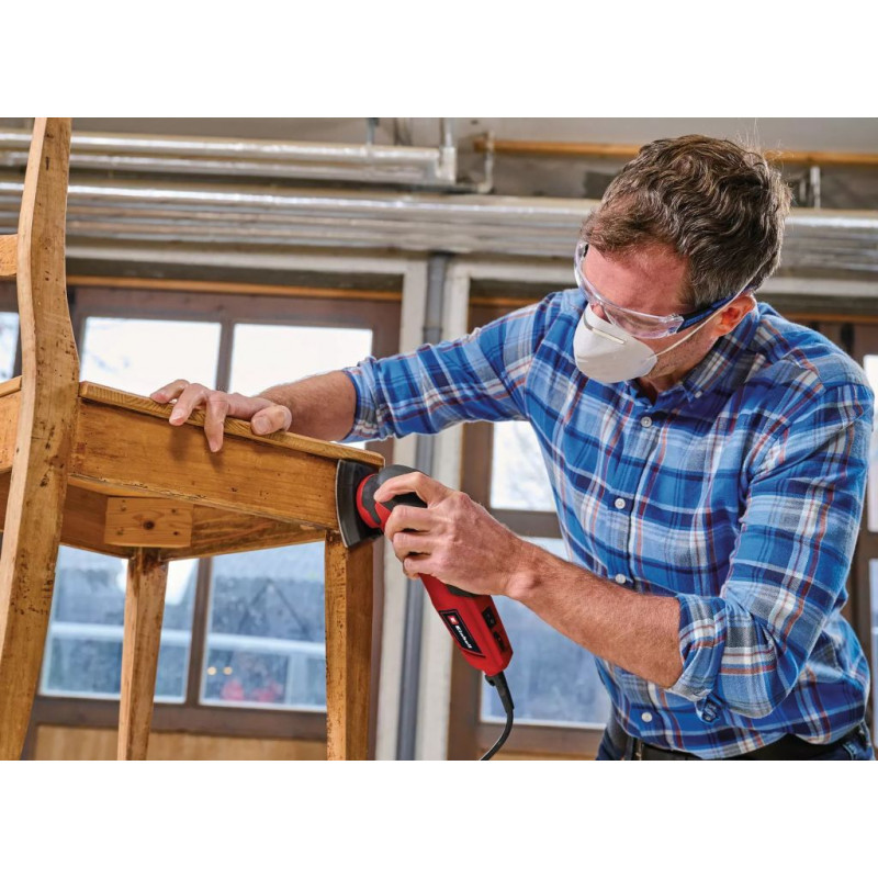 Vous voulez apporter la touche finale a votre projet ? Utilisez directement la ponceuse triangulaire TC-DS 20 E Einhell. Cet outil compact est en effet vendu avec les feuilles abrasives adaptées. L’outil est vendu avec 9 feuilles abrasives de différentes granularités : 2x grain 60, 2x grain 120, 2x grain 240, 3 x grain 400 Permet le ponçage plus ou moins fin de divers matériaux.