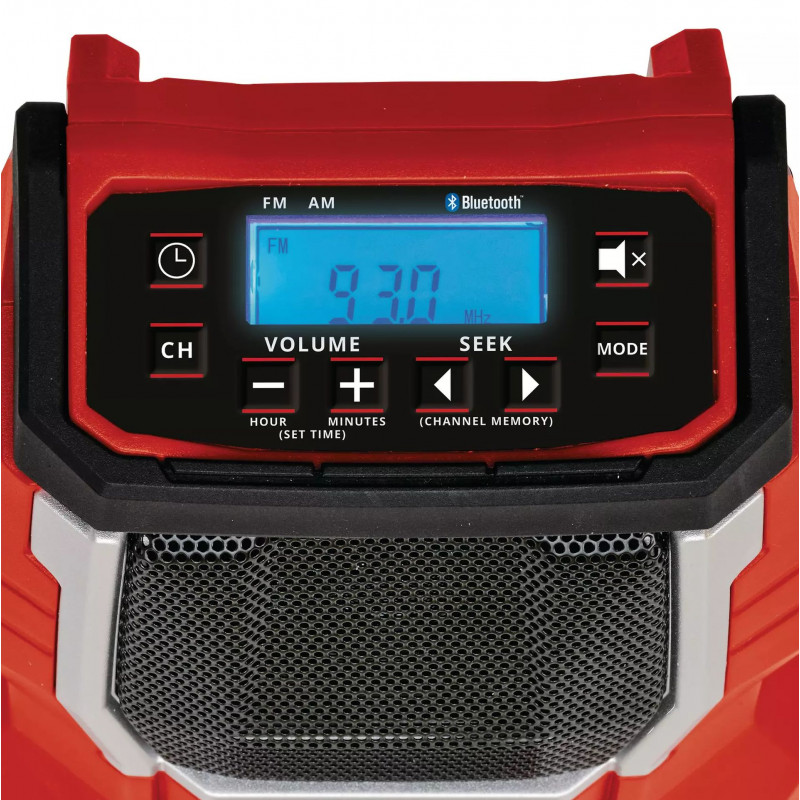 Avec la radio sans fil TC-RA 18 Li BT - Solo Einhell, travailler a l’atelier, dans le jardin ou sur le chantier est encore plus agréable ! Avec son haut-parleur mono, cette radio compacte et légere offre un son optimal en toute liberté. Classée IPX0, elle est parfaitement adaptée a une utilisation dans des espaces secs. Une pile de secours (AAA) est intégrée pour pouvoir conserver les données mémorisées comme les stations de radio ou l’heure lorsque la batterie Power X-Change est retirée.
