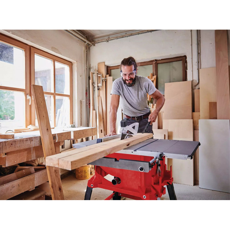 La scie circulaire sur table TC-TS 2225 U Einhell est un outil puissant pour une utilisation précise et flexible. La butée parallele tres stable, dotée d’un dispositif de blocage des deux côtés, assure des coupes longitudinales précises, et permet de réaliser facilement de belles coupes d’angle grâce a la butée d’angle ou la lame de scie inclinable. Les rallonges latérales coulissantes et l’extension arriere permettent d’étendre la surface portante. Le moteur puissant est conçu pour des travaux de grande ampleur, la fonction de démarrage progressif intégrée préservant a la fois ce moteur et les fusibles. L’appareil est doté de fonctionnalités tres pratiques comme les supports prévus au niveau du bâti pour ranger l’ensemble des butées et outils fournis, la tige coulissante, ainsi que le câble d’alimentation.