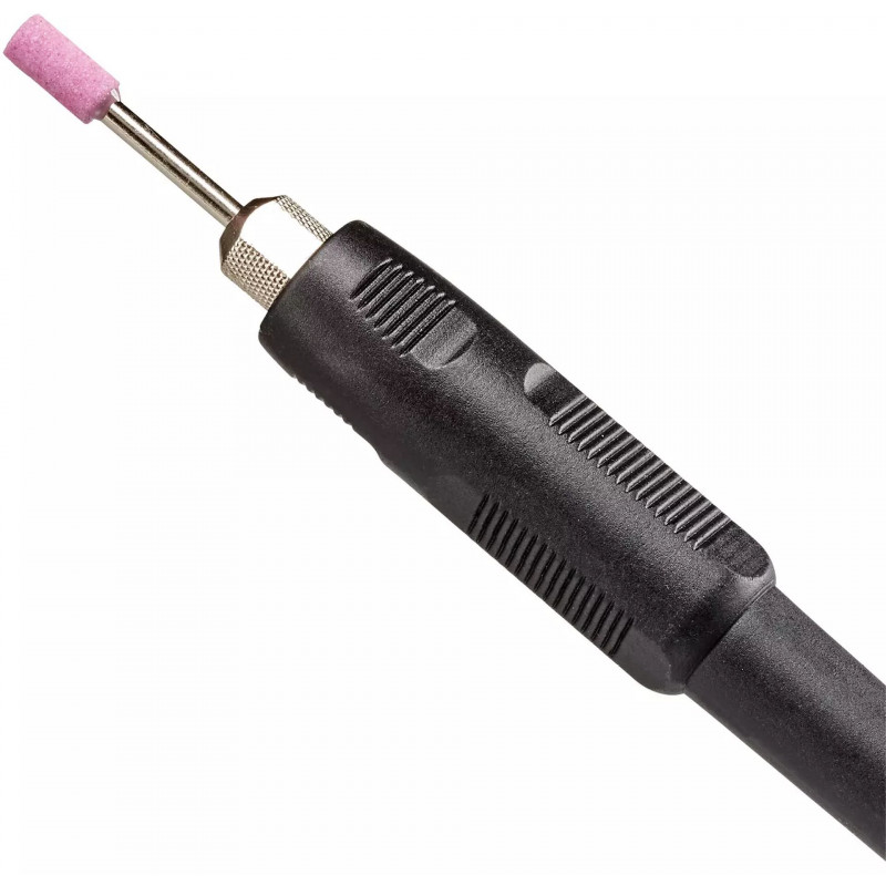 Le touret a meuler TC-XG 75 Kit Einhell est un outil flexible permettant d’affuter des outils tres divers : des forets et fraises aux accessoires de coupe et burins, en passant par les ciseaux, couteaux et lames. L’arbre porte-meules flexible permet des travaux de grande précision. En outre, la vitesse peut etre adaptée en fonction de l'utilisation. Grâce au jeu complet d’accessoires compris dans le kit Einhell, le touret a meuler permet de réaliser facilement et en toute sécurité des travaux de découpe, de nettoyage, de polissage et de meulage. Quatre patins en caoutchouc anti-vibration assurent une bonne stabilité. Les supports de travail ajustables permettent d’adapter le touret a meuler sans effort pour différentes applications. Les pare-étincelles ajustables se reglent sans outil. Le bâti métallique compact et robuste garantit une longue durée de vie. Grâce a son arbre porte-meules monté sur roulement a billes, le touret a meuler fonctionne sans jeu pour un travail précis. Le capot de protection fermé sur le côté permet en outre une utilisation en toute sécurité.