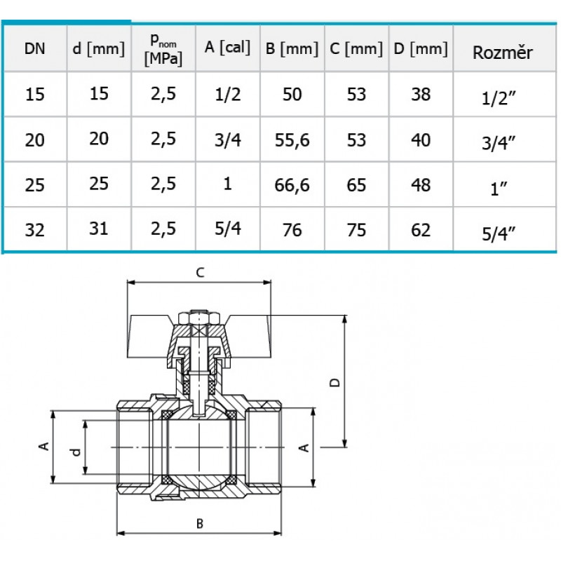 | Typ kohoutu | plnoprůtočný |