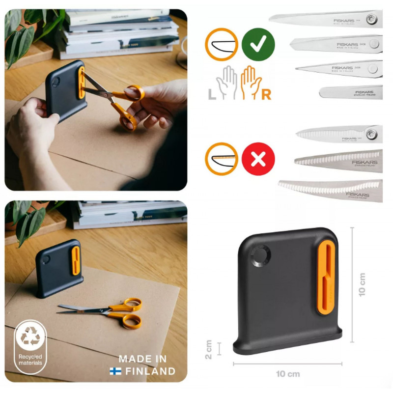 Fiskars Aiguiseur de ciseaux est idéal pour affuter les ciseaux a lames droites standard et maintenir un tranchant optimal tout au long de leur durée de vie.